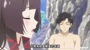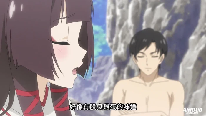 Когда Ёсидзо пришел сознание, то он, конечно же, первым делом решил искупаться в горячем источнике, а компанию ему составила Маюдама – жрица богини Инари, чуть позже к этой парочке присоединилась девушка – эльф.
